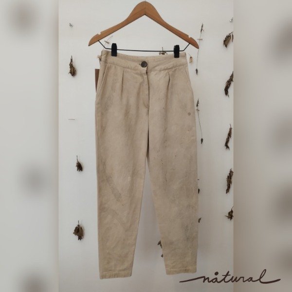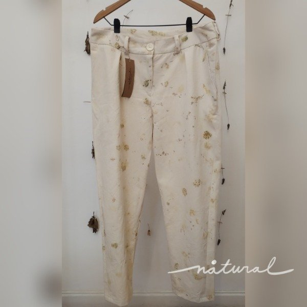 Pantalón pinzado de gabardina 100% algodón estampado con plantas y flores.